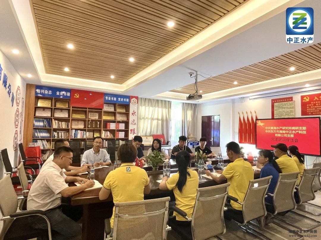 新龍鎮(zhèn)黨委委員、政法委員、副書記陳海,黃海水產研究所病研支部書記張慶利、支部宣傳委員董宣以及團隊成員,中正水產副總裁王平、生產部副總經理宋永強、支部書記覃晶與協(xié)會支部書記李婷以及支部黨員和發(fā)展對象。